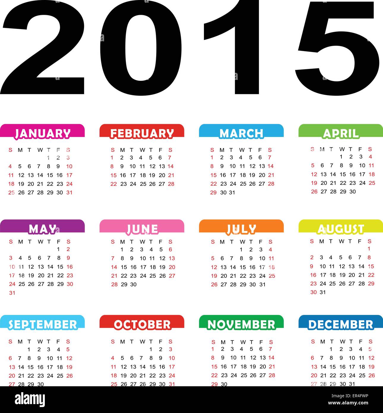 Vector illustration of year 2015 calendar colorful Stock Vector